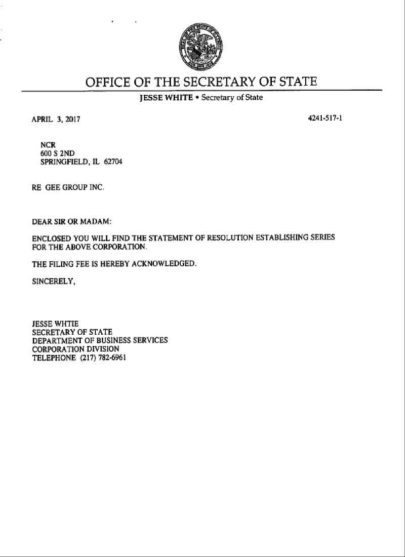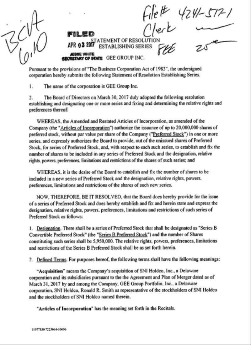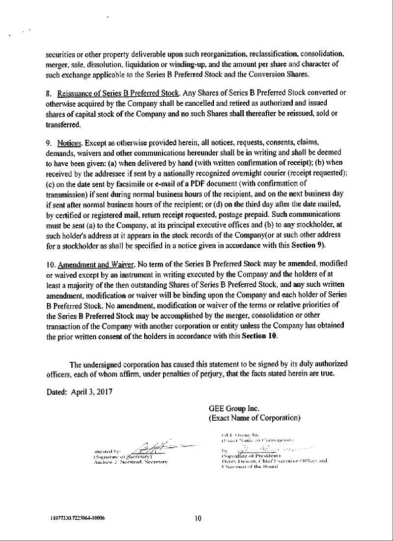 OF GEE GROUP, INC.