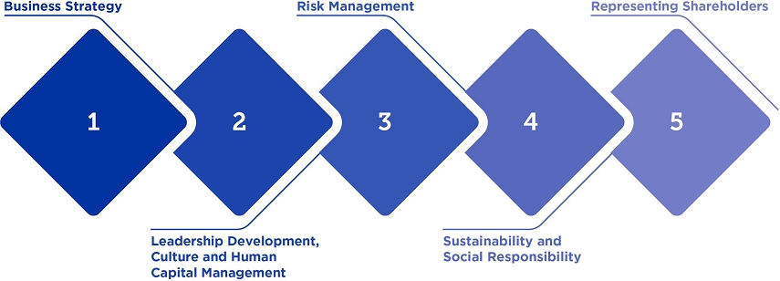 Guiding the development and execution of the company’s long-term Accelerate strategy remains the board’s top priority. At each meeting, the board receives updates from company leaders on how they are advancing the Accelerate strategy, including regular discussions on portfolio shaping. The board is confident that the Accelerate strategy will benefit shareholders by providing a strategic foundation for long-term value creation.