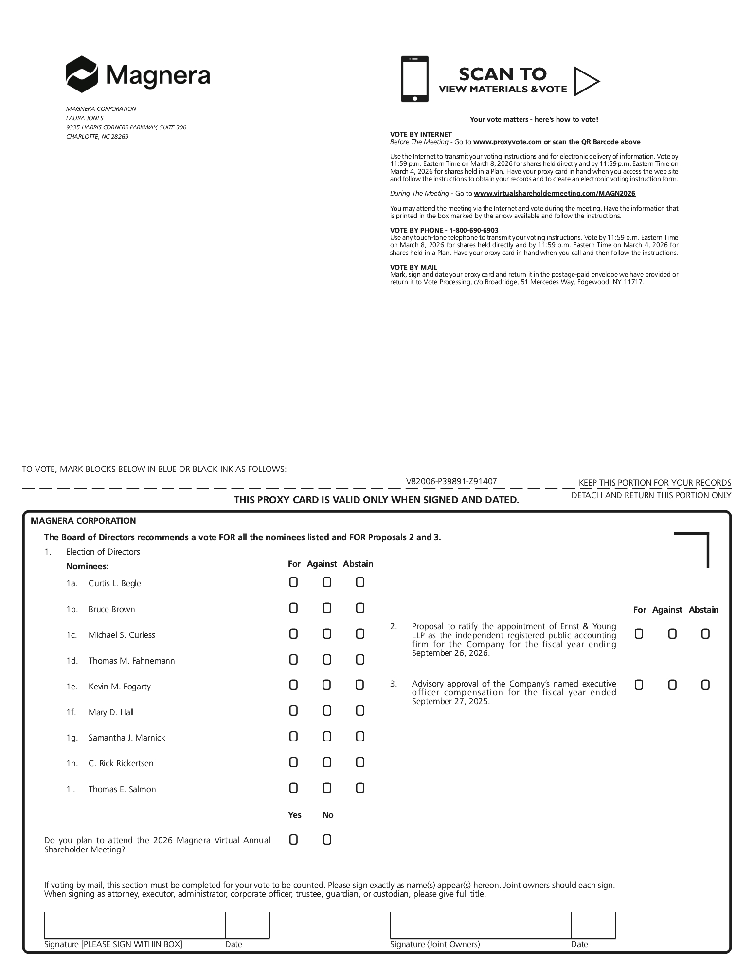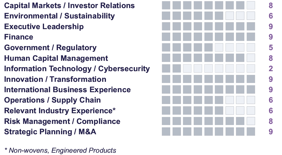 The NCG Committee recommended, and the Board approved, the nomination of all nine incumbent directors for re-election at the Annual Meeting. These decisions were based on the individual experiences, qualifications, attributes, and skills of each candidate, including as described in the skills matrix in the “Board Skills and Experience” section of this proxy statement.