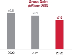| • | Financial: Our total revenue increased 33% in 2022 as compared to 2021. Our International revenue increased 20% and our North America revenue increased 51% in 2022 compared to 2021, with improved margins driven by increased activity and pricing gains. Overall, our Completion and Production and Drilling and Evaluation operating segments finished the year with 18% and 15% operating margins, respectively. We generated strong cash flows from operations and retired $1.2 billion of debt. |