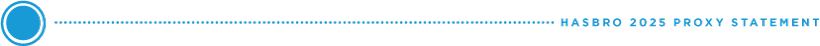 In this Proxy Statement, the terms “Hasbro,” “the Company,” “we,” and “our” refer to Hasbro, Inc., and the terms “Board” and “Board of Directors” refer to the Board of Directors of Hasbro, Inc. Unless otherwise stated, information presented in this Proxy Statement is based on Hasbro’s fiscal year. This Proxy Statement includes website addresses and references to additional materials found on those websites. These websites and materials are not incorporated into this Proxy Statement by reference.