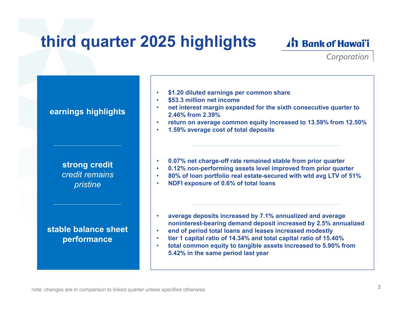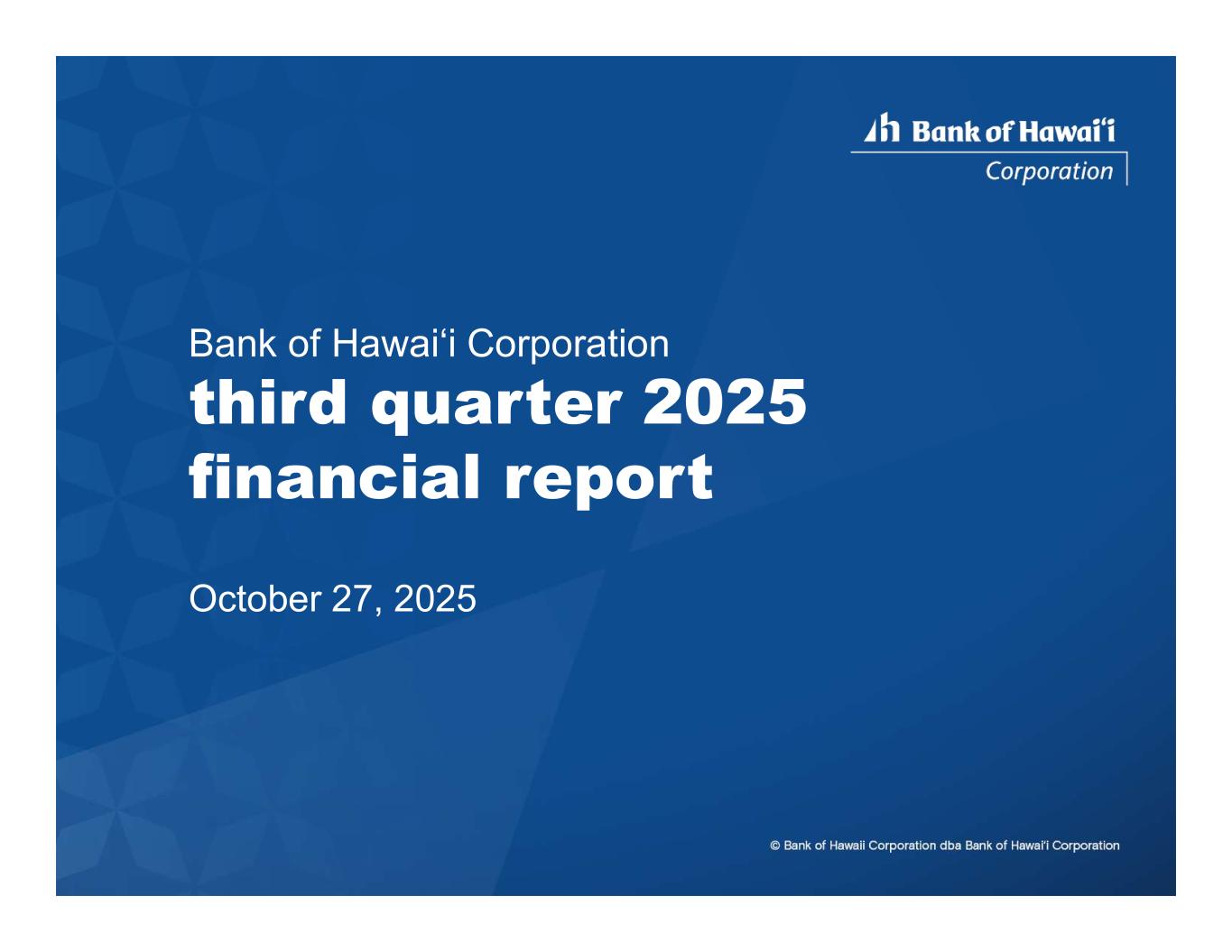 Bank of Hawai‘i Corporation third quarter 2025 financial report October 27, 2025