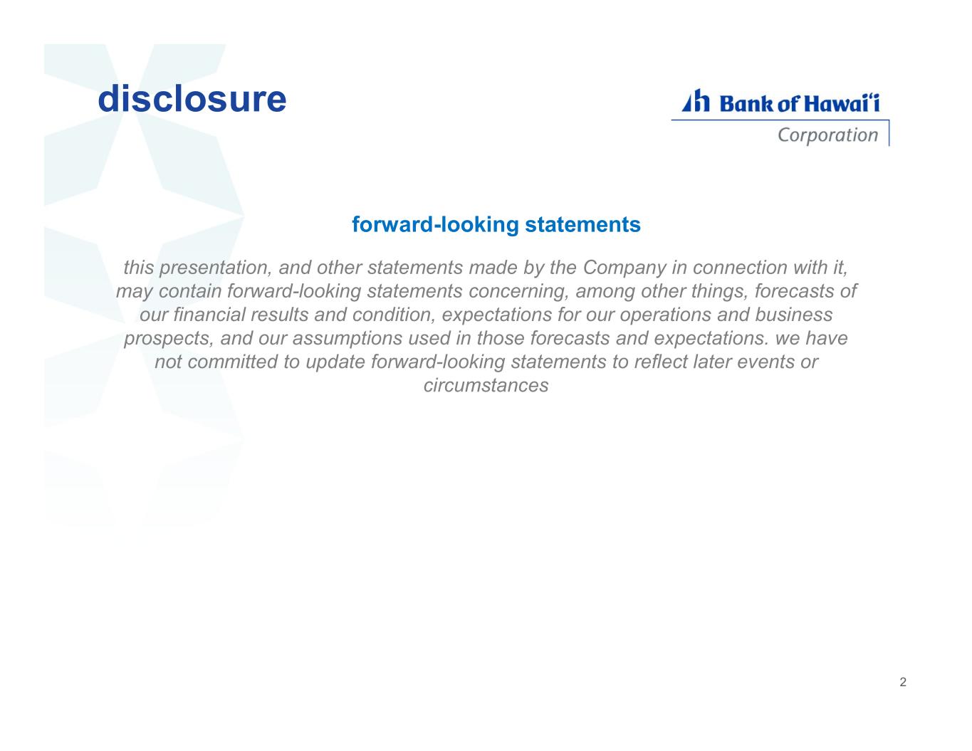 this presentation, and other statements made by the Company in connection with it, may contain forward-looking statements concerning, among other things, forecasts of our financial results and condition, expectations for our operations and business prospects, and our assumptions used in those forecasts and expectations. we have not committed to update forward-looking statements to reflect later events or circumstances disclosure 2 forward-looking statements