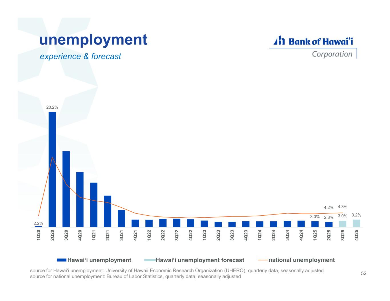 2.2% 20.2% 3.0% 2.8% 3.0% 3.2% 4.2% 4.3% 1 Q 2 0 2 Q 2 0 3 Q 2 0 4 Q 2 0 1 Q 2 1 2 Q 2 1 3 Q 2 1 4 Q 2 1 1 Q 2 2 2 Q 2 2 3 Q 2 2 4 Q 2 2 1 Q 2 3 2 Q 2 3 3 Q 2 3 4 Q 2 3 1 Q 2 4 2 Q 2 4 3 Q 2 4 4 Q 2 4 1 Q 2 5 2 Q 2 5 3 Q 2 5 4 Q 2 5 Hawai‘i unemployment Hawai‘i unemployment forecast national unemployment unemployment experience & forecast source for Hawai‘i unemployment: University of Hawaii Economic Research Organization (UHERO), quarterly data, seasonally adjusted source for national unemployment: Bureau of Labor Statistics, quarterly data, seasonally adjusted 52