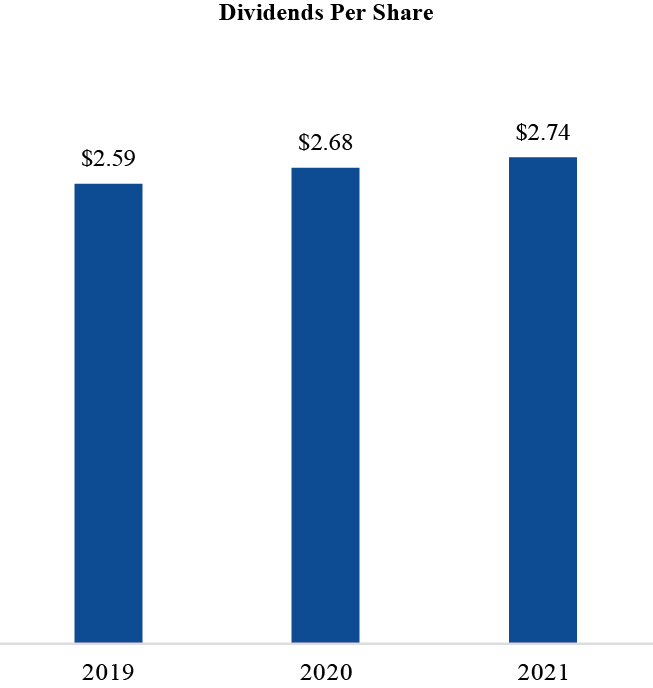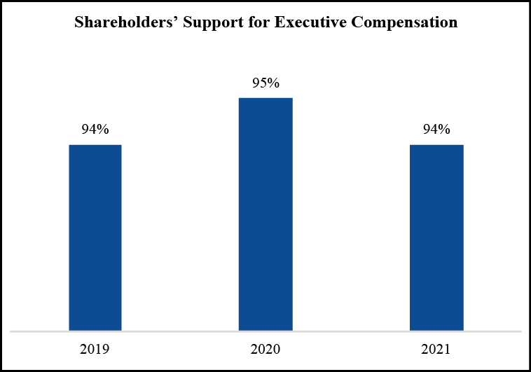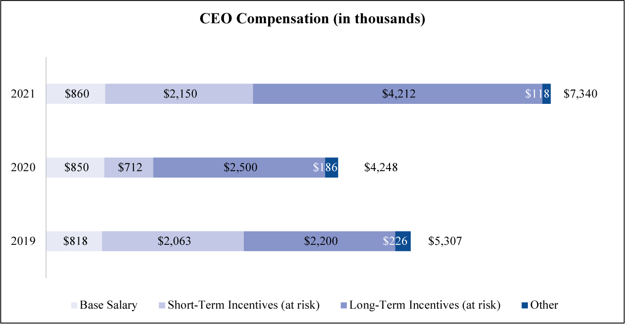 Based on this information, the ratio for 2021 of the annual total compensation of our Chairman, Chief Executive Officer, and President to the median of the annual total compensation of all employees is 111 to 1.