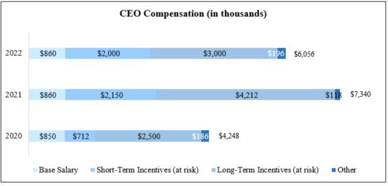Based on this information, the ratio for 2022 of the annual total compensation of our Chairman, Chief Executive Officer, and President to the median of the annual total compensation of all employees is 91 to 1.