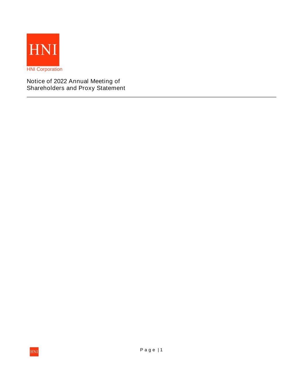 P a g e | 1 HNI Corporation Notice of 2022 Annual Meeting of Shareholders and Proxy Statement