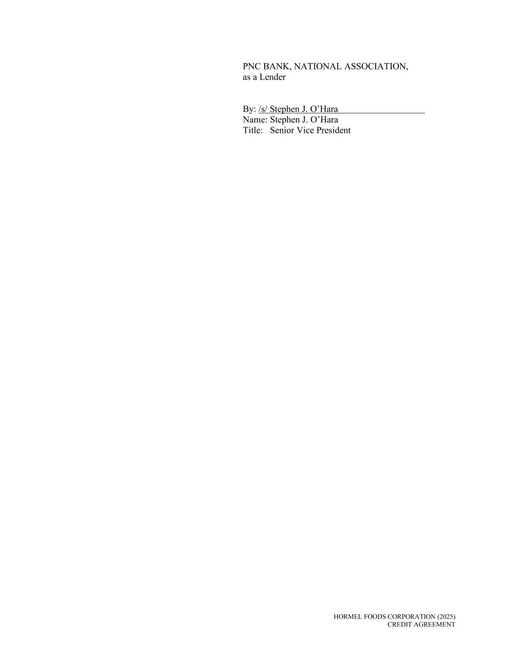HORMEL FOODS CORPORATION (2025) CREDIT AGREEMENT PNC BANK, NATIONAL ASSOCIATION, as a Lender By: /s/ Stephen J. O’Hara Name: Stephen J. O’Hara Title: Senior Vice President
