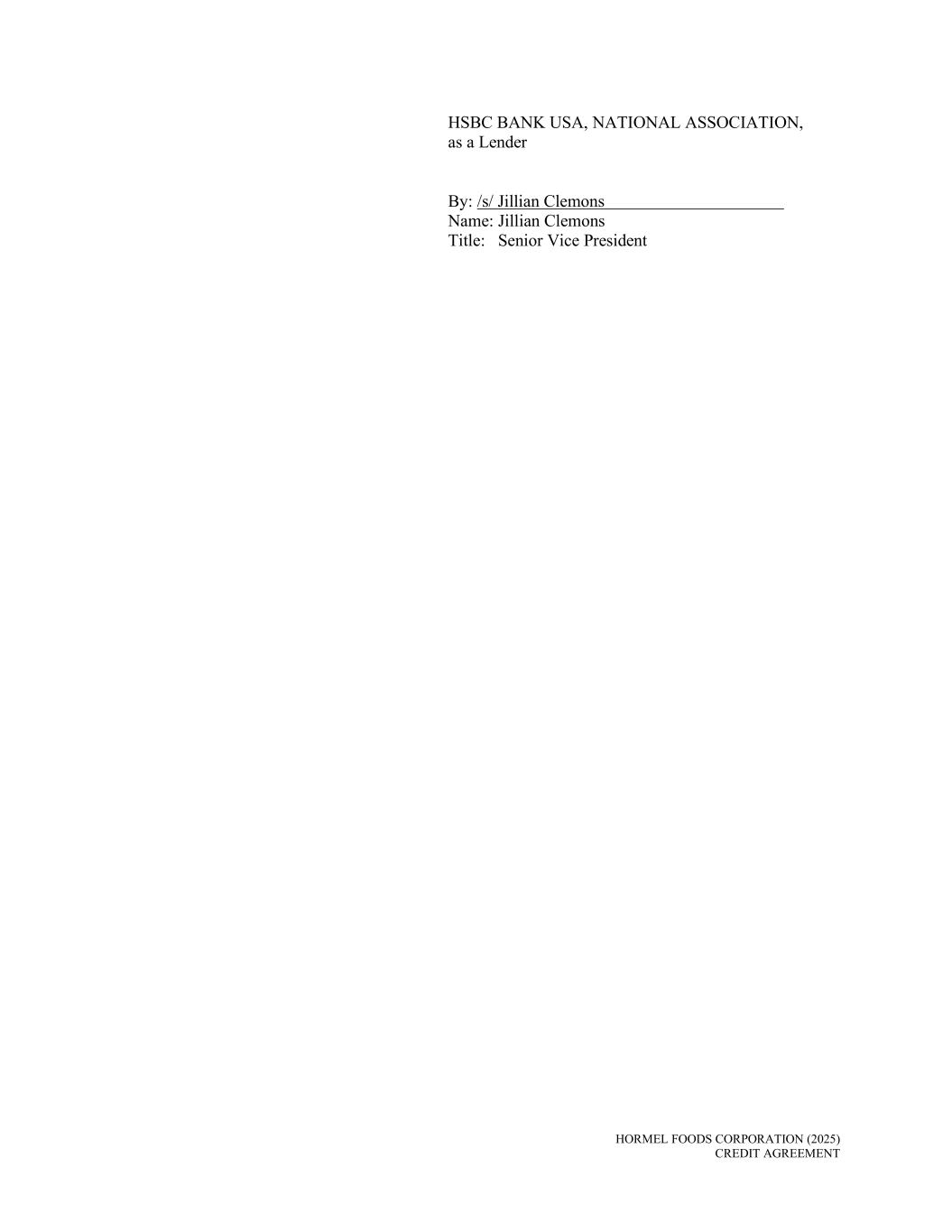 HORMEL FOODS CORPORATION (2025) CREDIT AGREEMENT HSBC BANK USA, NATIONAL ASSOCIATION, as a Lender By: /s/ Jillian Clemons Name: Jillian Clemons Title: Senior Vice President