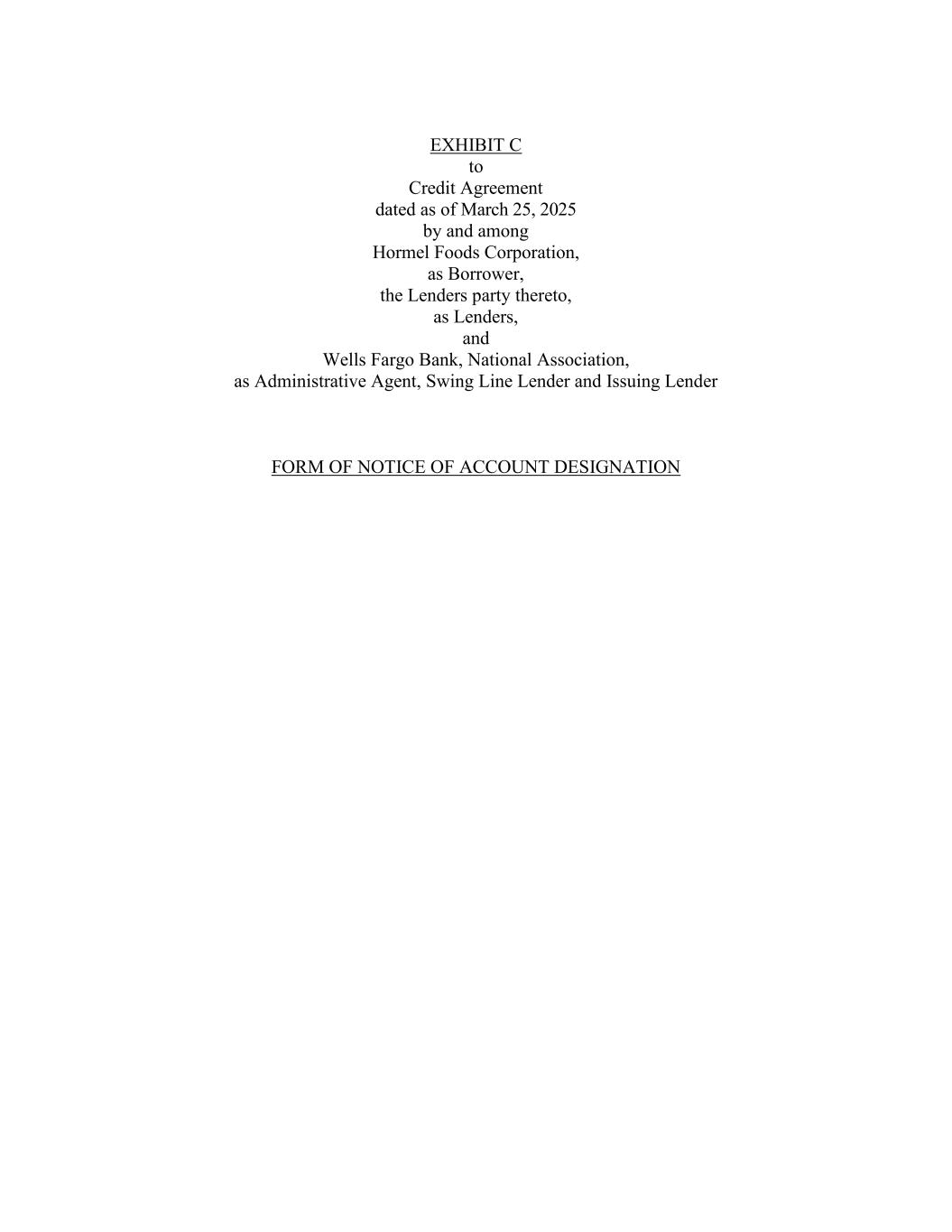 EXHIBIT C to Credit Agreement dated as of March 25, 2025 by and among Hormel Foods Corporation, as Borrower, the Lenders party thereto, as Lenders, and Wells Fargo Bank, National Association, as Administrative Agent, Swing Line Lender and Issuing Lender FORM OF NOTICE OF ACCOUNT DESIGNATION