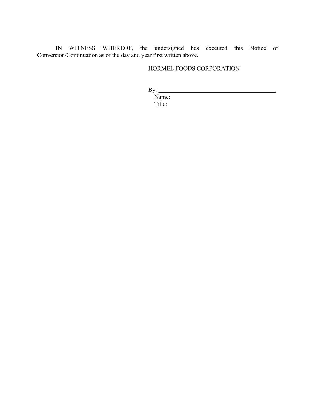 IN WITNESS WHEREOF, the undersigned has executed this Notice of Conversion/Continuation as of the day and year first written above. HORMEL FOODS CORPORATION By: Name: Title: