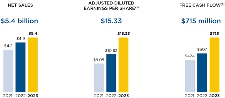 | (1) | Adjusted diluted earnings per share and adjusted operating profit margin are non-GAAP financial measures. A reconciliation to the comparable GAAP financial measures can be found in Management’s Discussion and Analysis of Financial Condition and Results of Operation in our Annual Report on Form 10-K for the year ended December 31, 2023, filed with the SEC on February 8, 2024. |