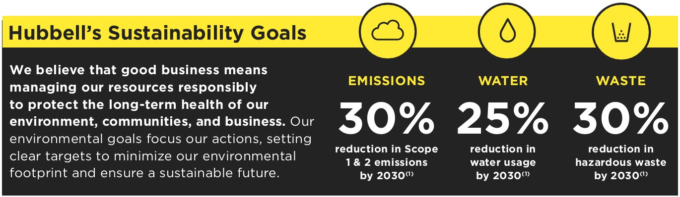 | In June 2024, Hubbell unveiled its new brand identity, Mission and Vision as part of its Investor Day event. Hubbell’s refreshed brand identity, featuring Hubbell’s signature color palette and updated enterprise logo, reflects Hubbell’s history and dedicated Mission to Electrify economies and Energize communities. | ||