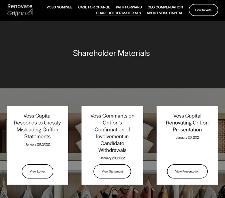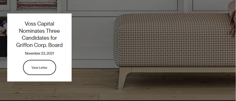 “That success, however, could be derailed by the election of the nominee from Voss Capital LLC to our Board, which we believe would disrupt Griffon’s substantial progress and business momentum, and diminish the quality and strength of our Board.”