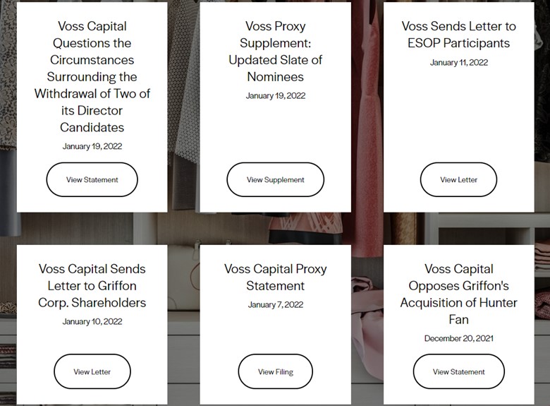 Voss Capital Responds to Grossly Misleading Griffon Statements