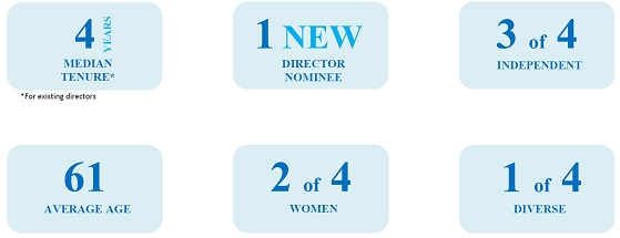 The following table provides summary information about each director nominee. For more detailed information about our directors, see “Proposal 1–Election of Directors” on page 20.