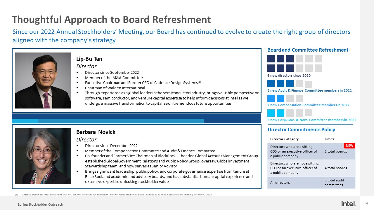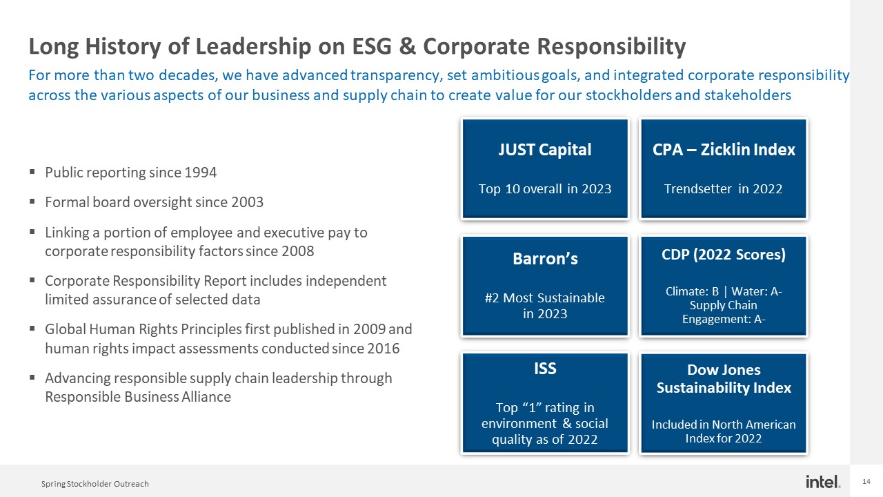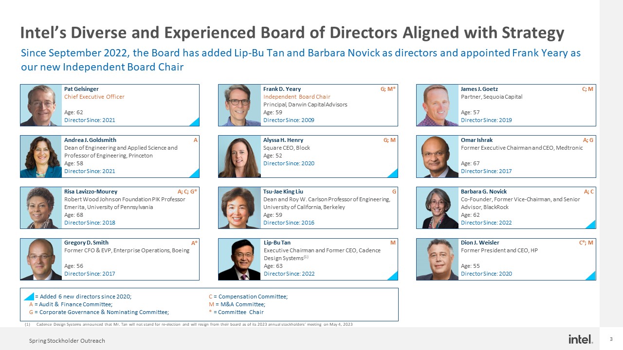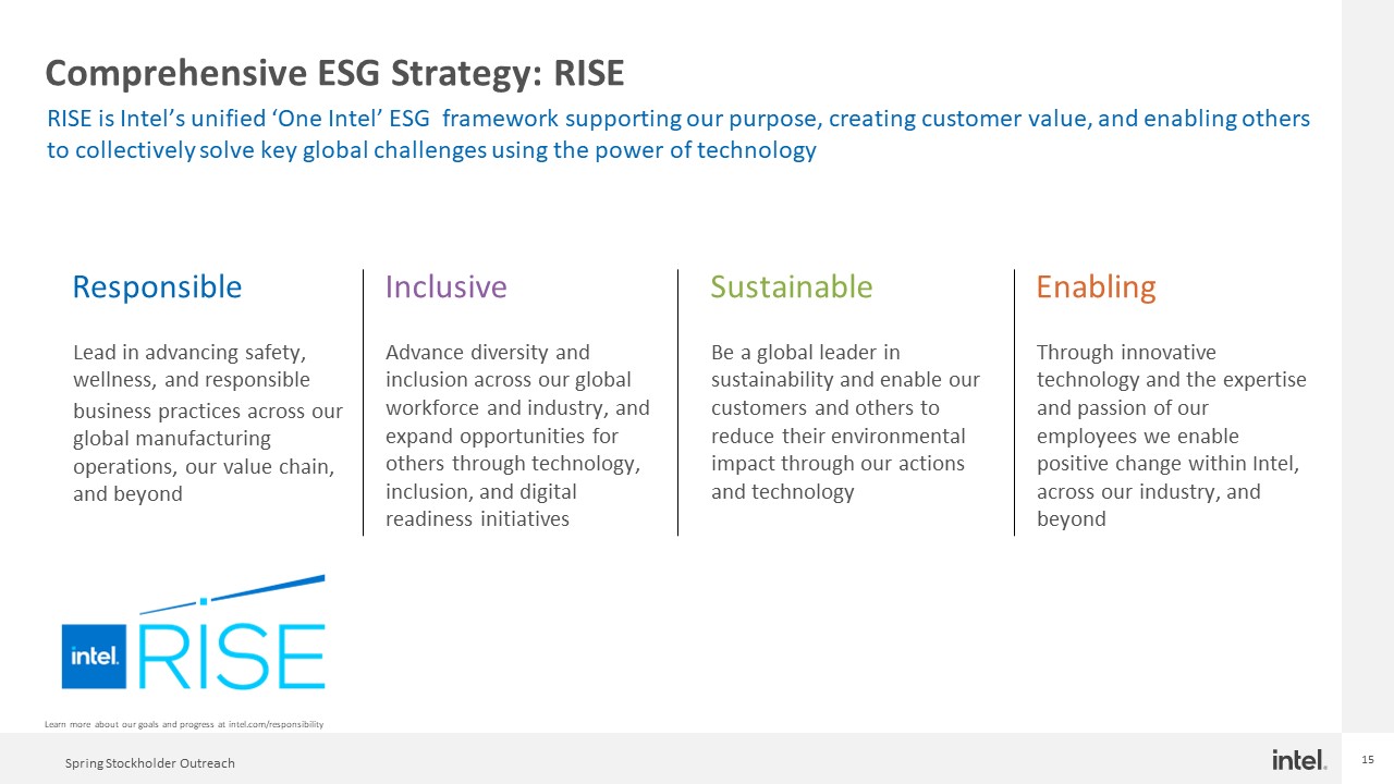 visiting our Investor Relations website at www.intc.com or the SEC's website at www.sec.gov. Intel does not undertake, and expressly disclaims any duty, to update any statement made in this presentation, whether as a result of