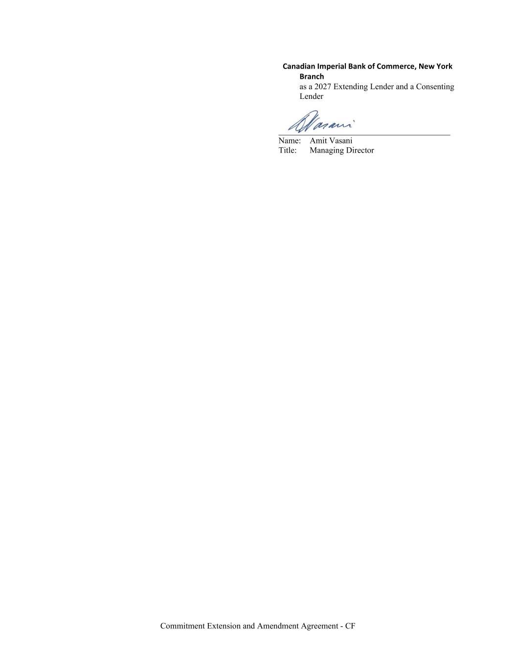 Commitment Extension and Amendment Agreement - CF Canadian Imperial Bank of Commerce, New York Branch as a 2027 Extending Lender and a Consenting Lender Name: Amit Vasani Title: Managing Director