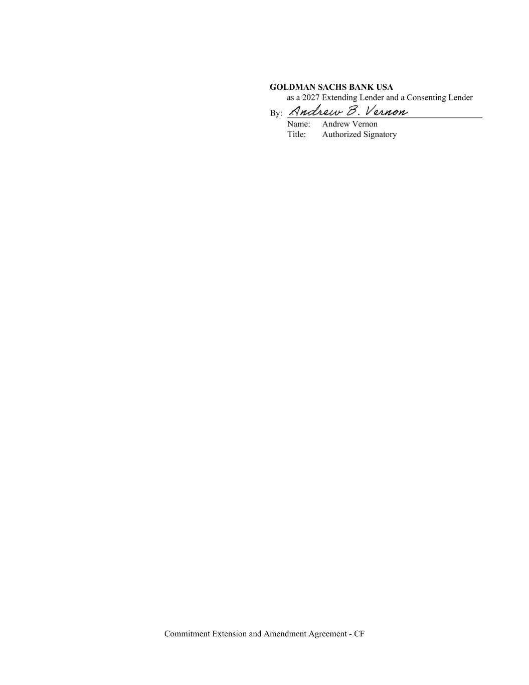 Commitment Extension and Amendment Agreement - CF GOLDMAN SACHS BANK USA as a 2027 Extending Lender and a Consenting Lender By: Name: Andrew Vernon Title: Authorized Signatory