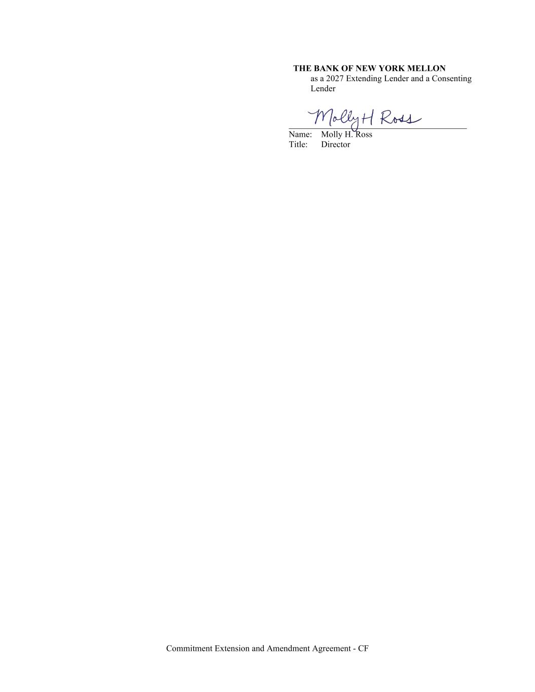 Commitment Extension and Amendment Agreement - CF THE BANK OF NEW YORK MELLON as a 2027 Extending Lender and a Consenting Lender Name: Molly H. Ross Title: Director