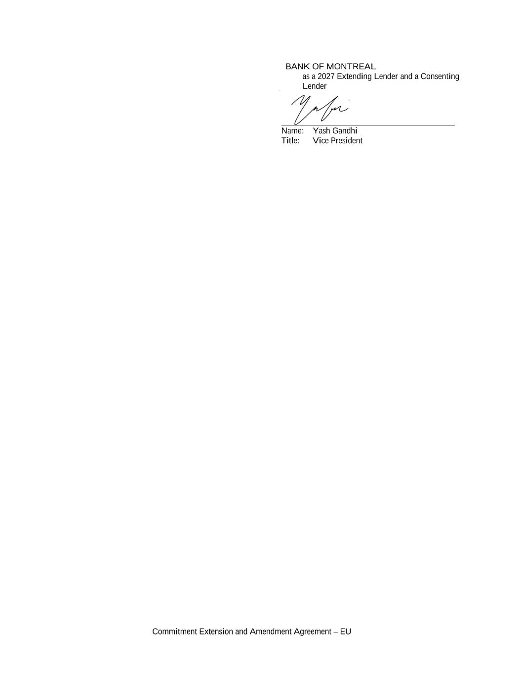 Commitment Extension and Amendment Agreement – EU BANK OF MONTREAL as a 2027 Extending Lender and a Consenting Lender Name: Yash Gandhi Title: Vice President