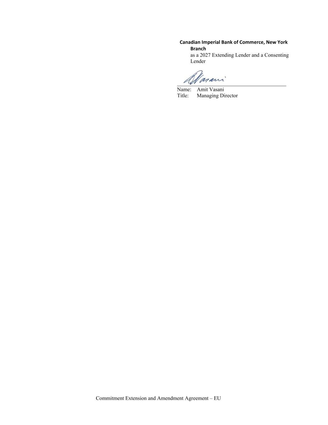 Commitment Extension and Amendment Agreement – EU Canadian Imperial Bank of Commerce, New York Branch as a 2027 Extending Lender and a Consenting Lender Name: Amit Vasani Title: Managing Director