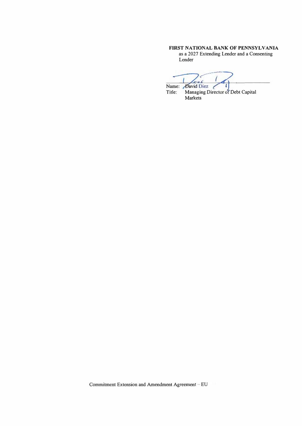 FIRST NATIONAL BANK OF PENNSYLVANIA as a 2027 Extending Lender and a Consenting Lender Name: Title: ,v;dr;;J..,.41-,-il ,�---- Managing Director of Debt Capital Markets Commitment Extension and Amendment Agreement EU
