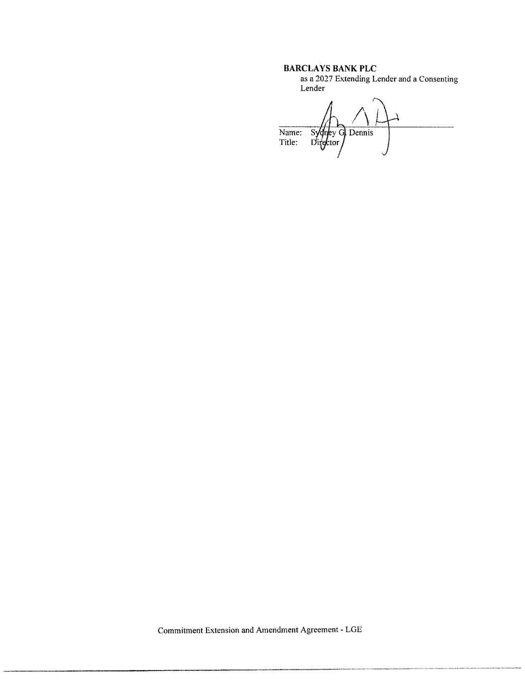 TRUISTBANK as a 2027 Extending Lender and a Consenting Lender Name: Title: Commitment Extension and Amendment Agreement - LGE