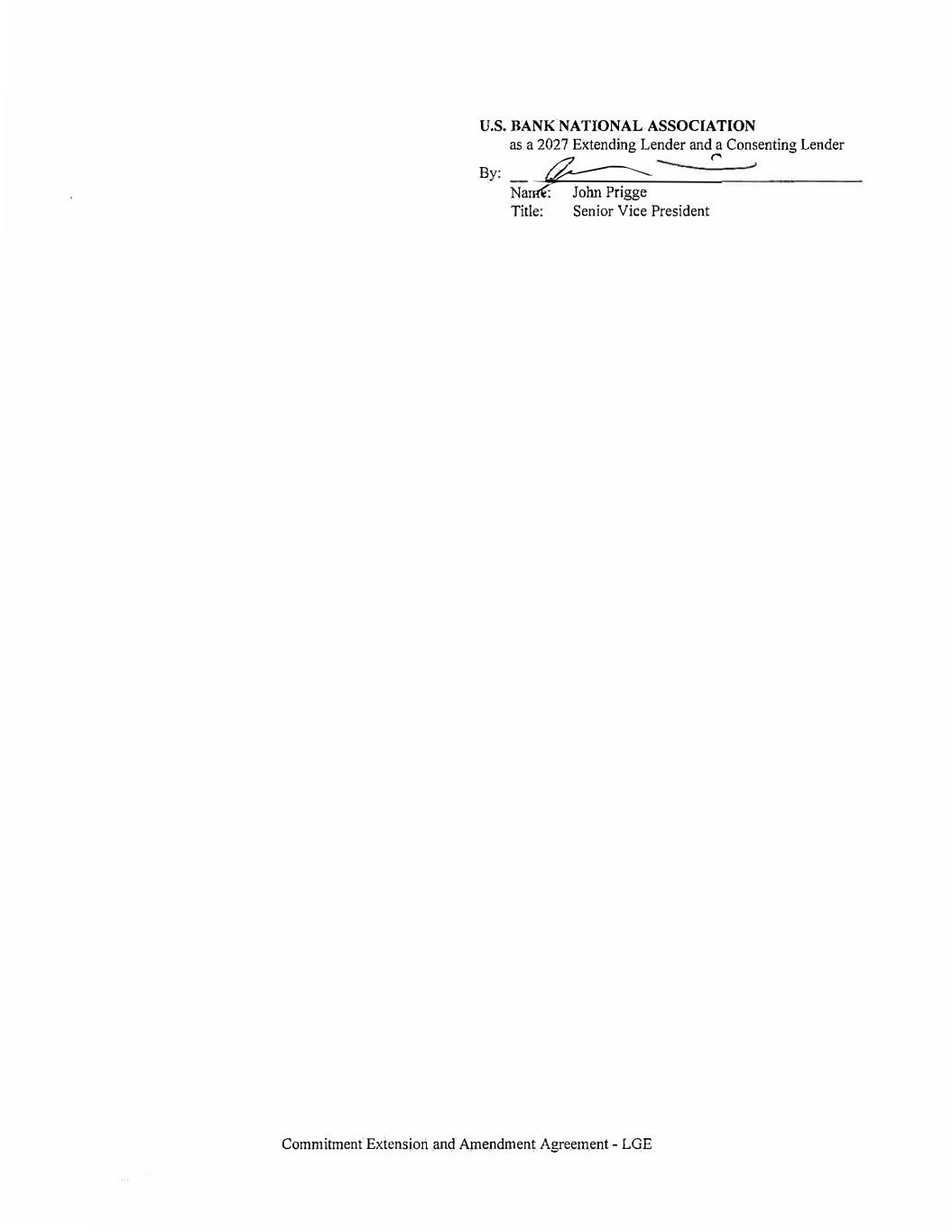 U.S. BANK NATIONAL ASSOCIATION as a 2027 Extending Lender and a Consenting Lender By: a-.----. r Na� Title: Senior Vice President Commitment Extension and Amendment Agreement - LGE