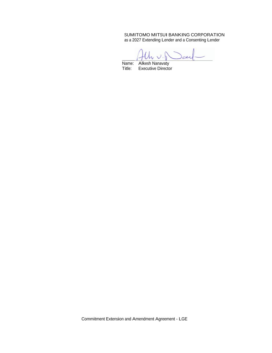 SUMITOMO MITSUI BANKING CORPORATION as a 2027 Extending Lender and a Consenting Lender Name: Alkesh Nanavaty Title: Executive Director Commitment Extension and Amendment Agreement - LGE
