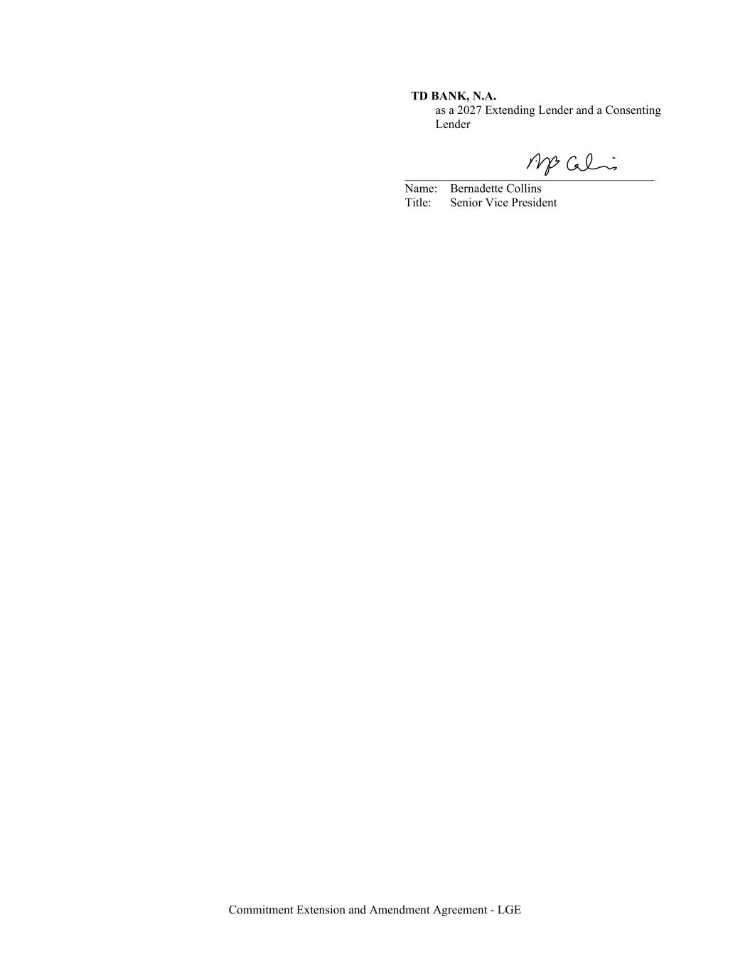 Commitment Extension and Amendment Agreement - LGE TD BANK, N.A. as a 2027 Extending Lender and a Consenting Lender Name: Bernadette Collins Title: Senior Vice President