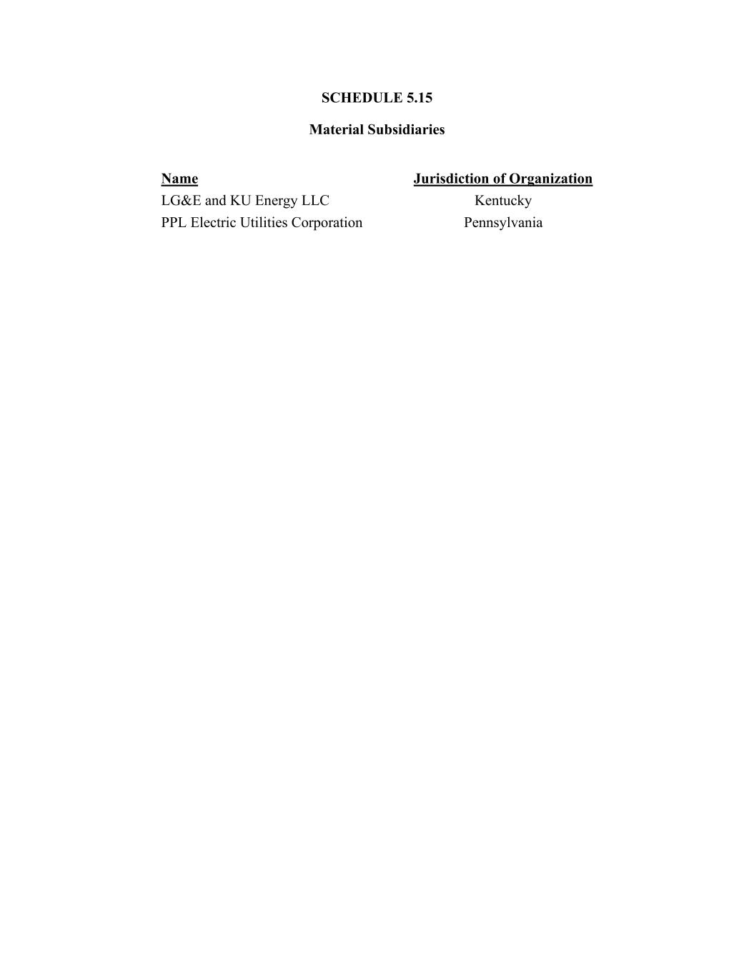SCHEDULE 5.15 Material Subsidiaries Name Jurisdiction of Organization LG&E and KU Energy LLC Kentucky PPL Electric Utilities Corporation Pennsylvania