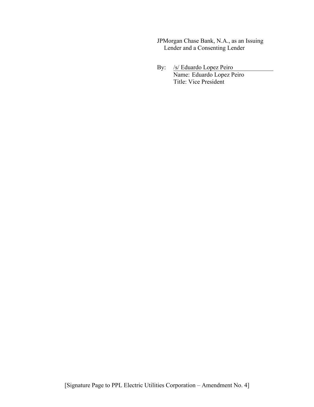 [Signature Page to PPL Electric Utilities Corporation – Amendment No. 4] JPMorgan Chase Bank, N.A., as an Issuing Lender and a Consenting Lender By: /s/ Eduardo Lopez Peiro Name: Eduardo Lopez Peiro Title: Vice President