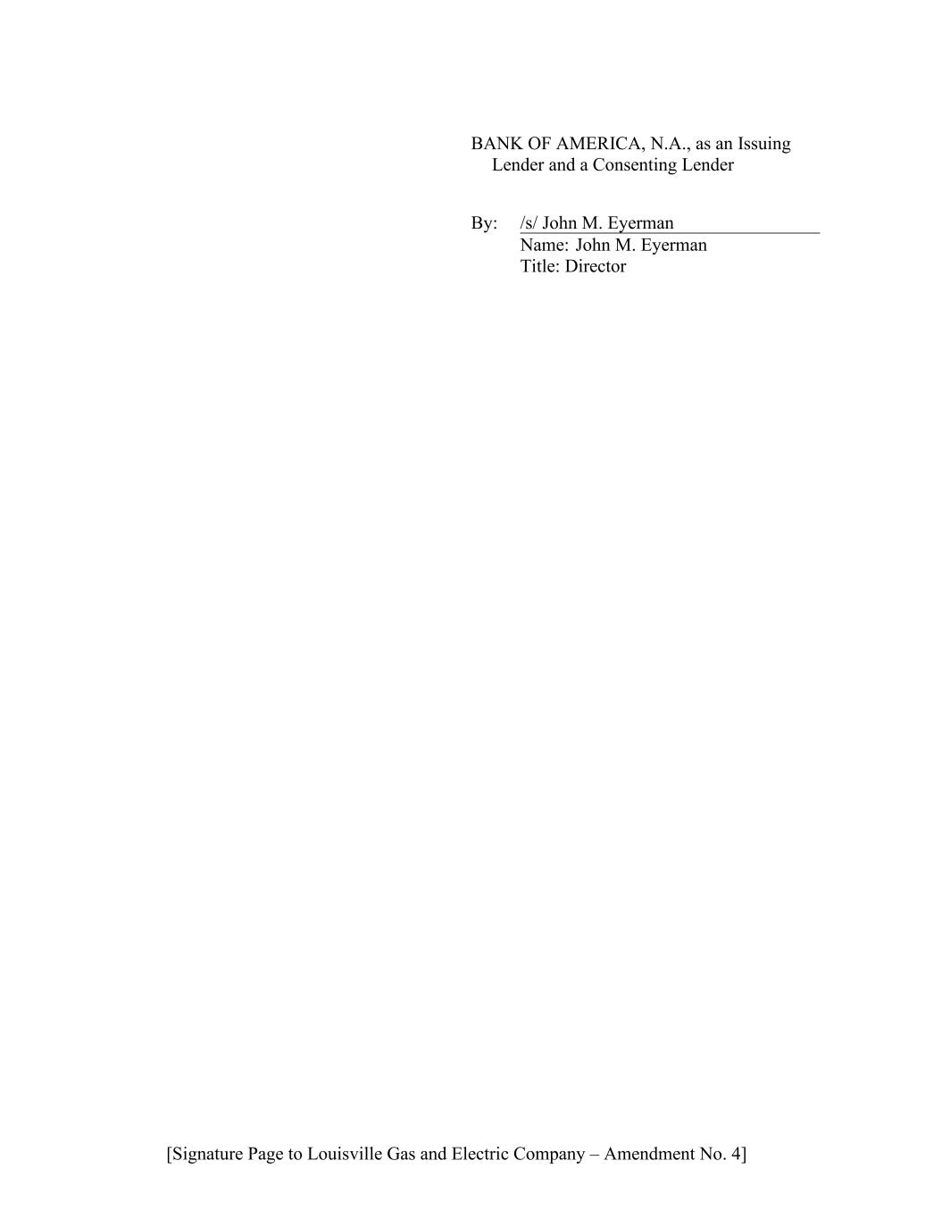 [Signature Page to Louisville Gas and Electric Company – Amendment No. 4] BANK OF AMERICA, N.A., as an Issuing Lender and a Consenting Lender By: /s/ John M. Eyerman Name: John M. Eyerman Title: Director