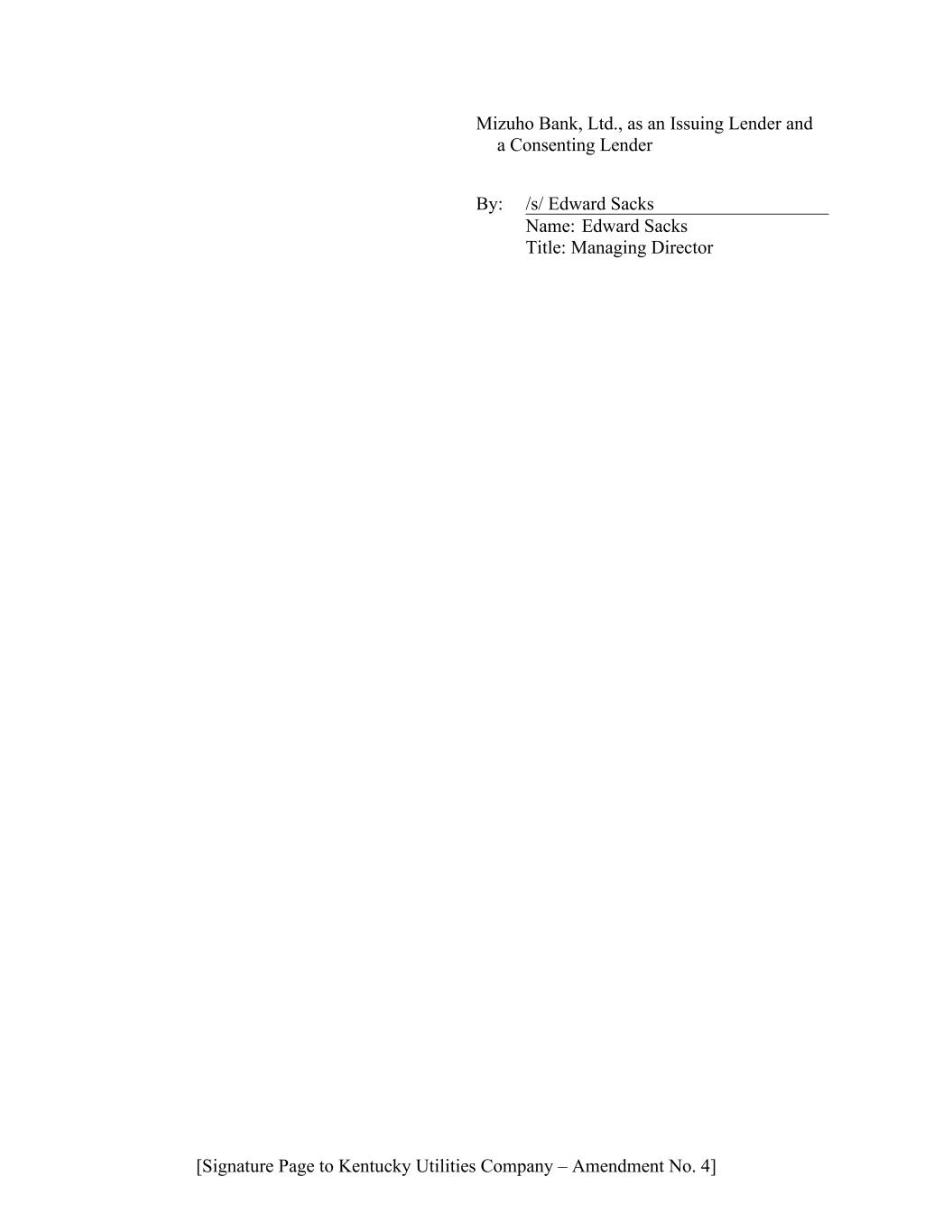 [Signature Page to Kentucky Utilities Company – Amendment No. 4] Mizuho Bank, Ltd., as an Issuing Lender and a Consenting Lender By: /s/ Edward Sacks Name: Edward Sacks Title: Managing Director