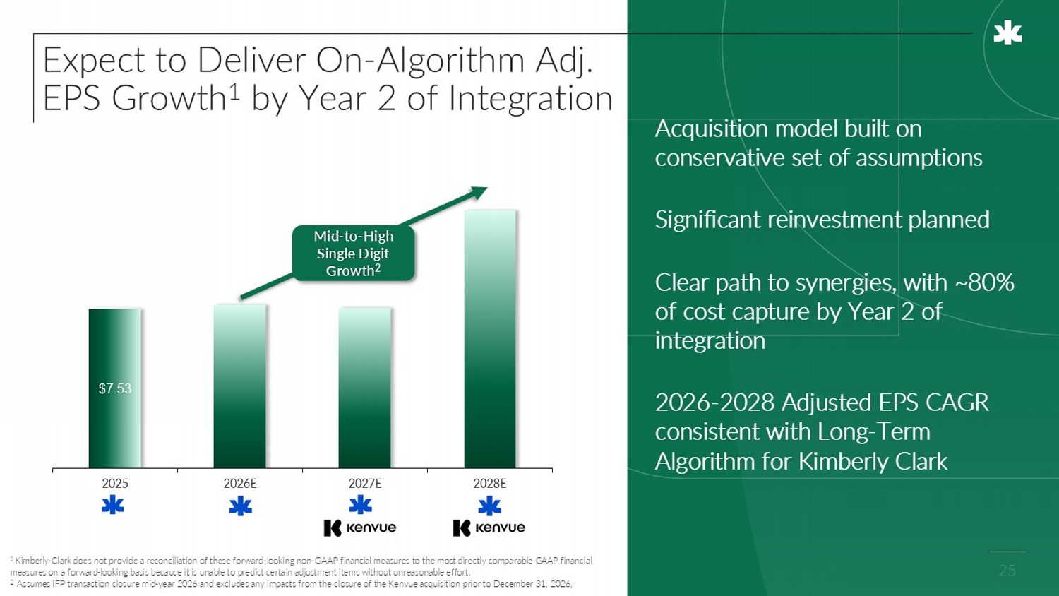 Beyond 2026, and assuming a year-end close of the Kenvue acquisition, we believe the combination of strong cost synergy opportunities and the complementarity of the two portfolios will enable us to deliver on-algorithm Adjusted EPS growth, in the mid-to-high single digit range, on a 2-year CAGR, from 2026 to 2028.