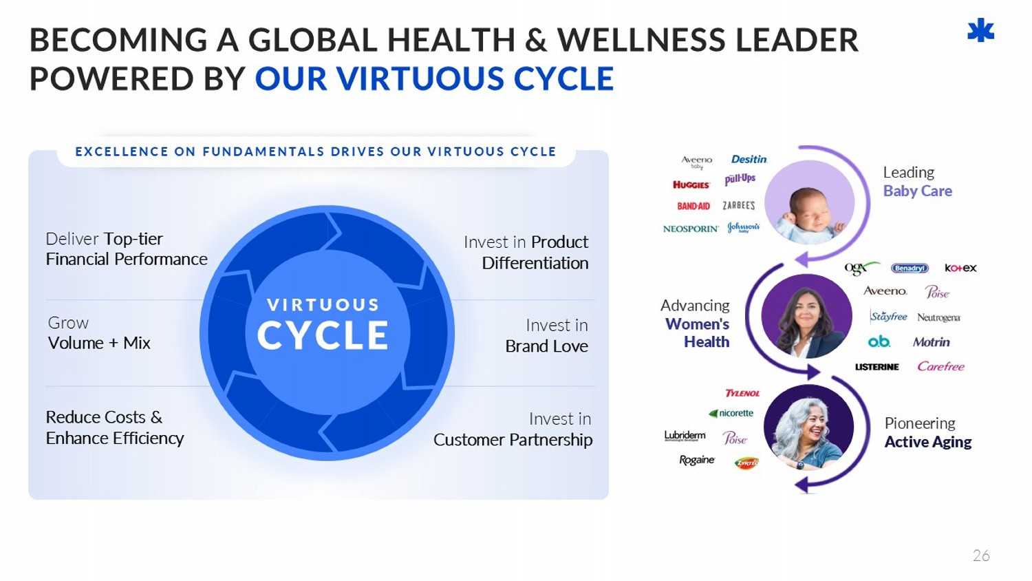 The winning capabilities we’ve developed through Powering Care provide a plug-and-play model, to take Kenvue's portfolio of market-leading consumer health brands to the next level. We intend to get Kenvue’s brands on a Virtuous Cycle of growth, as we’ve done at Kimberly-Clark. This is what will enable us to build a scaled health and wellness leader, a leader that will be new and different in the world of CPG.