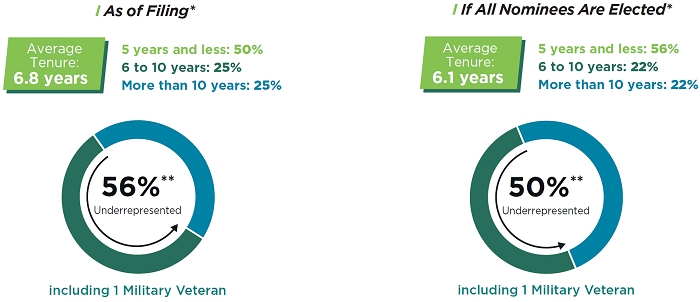 Election of Directors • 9 of 10 nominees (90%) are independent • Diverse slate, including 50% of nominees and 2 committee chairs from underrepresented groups (by gender or race/ethnicity) • Active Board refreshment, with four new directors in last five years and one new director nominated for election at the Annual Meeting • Robust Board oversight of Company strategy and risks • Responsive and evolving corporate governance practices |