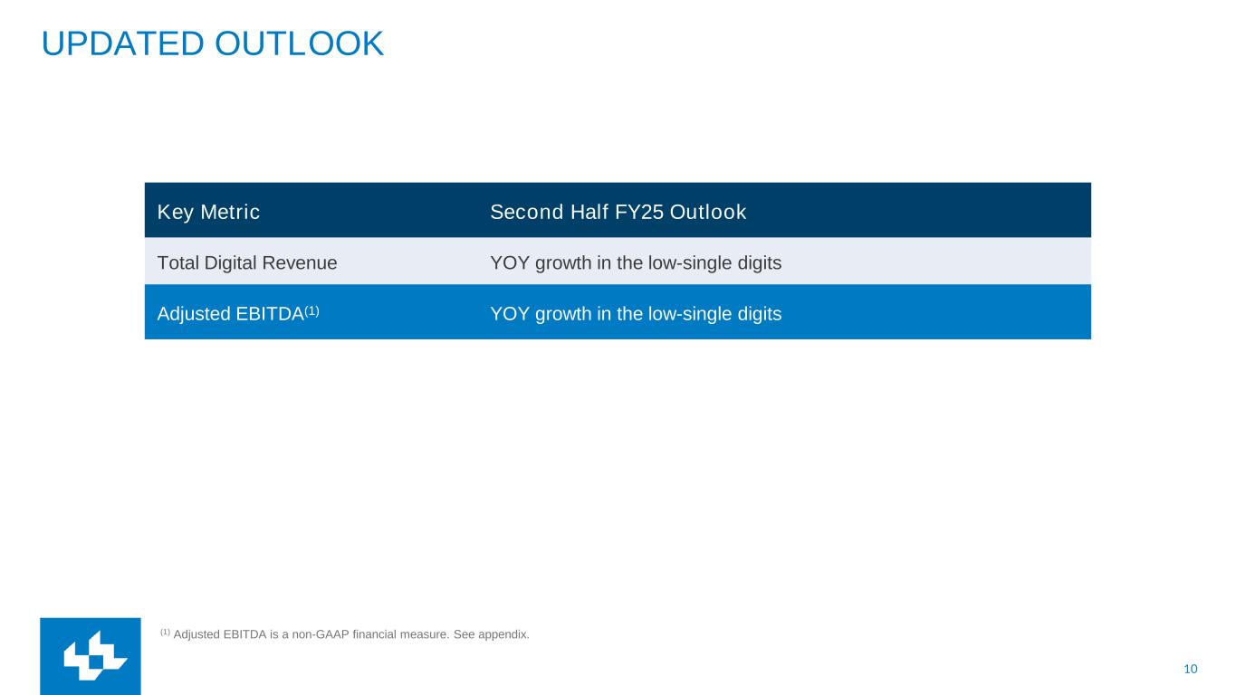 10 UPDATED OUTLOOK (1) Adjusted EBITDA is a non-GAAP financial measure. See appendix. Key Metric Second Half FY25 Outlook Total Digital Revenue YOY growth in the low-single digits Adjusted EBITDA(1) YOY growth in the low-single digits