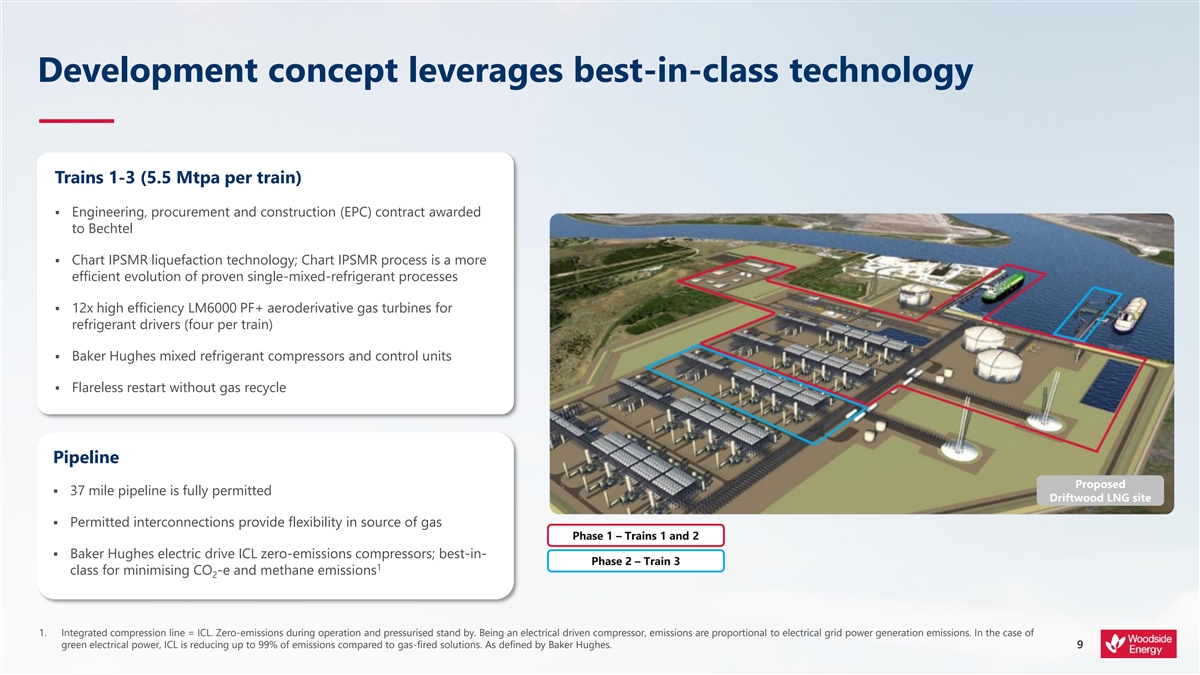 | • | The design is cost and carbon competitive. Woodside expects development costs of ~$900-960/tonne for Phase 1 and 2.3The contracting strategy is a lump-sum turnkey contract with LNG contractor Bechtel; and |