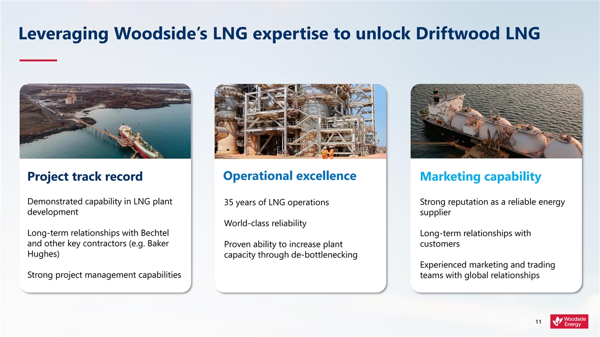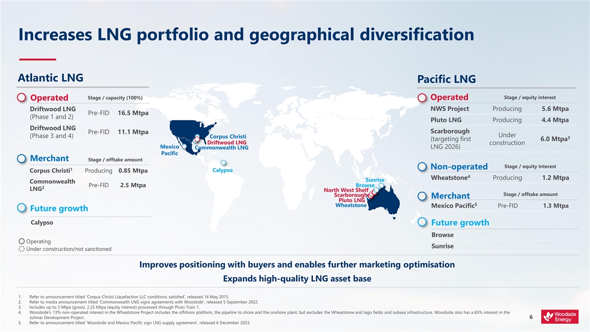 | • | Expanding Woodside’s position as a leading independent LNG company; |