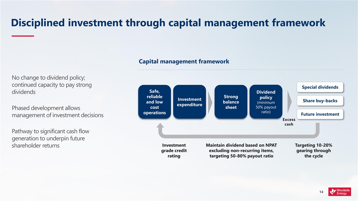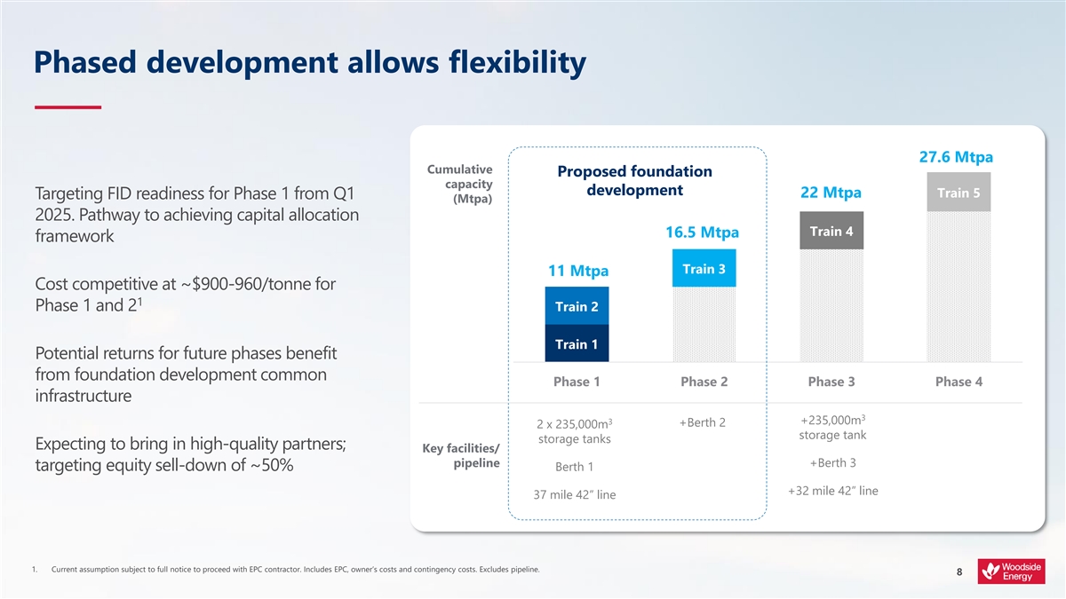 | • | Increasing long-term cashflow generation potential with a phased development to manage investment decisions aligned with Woodside’s capital allocation framework; and |