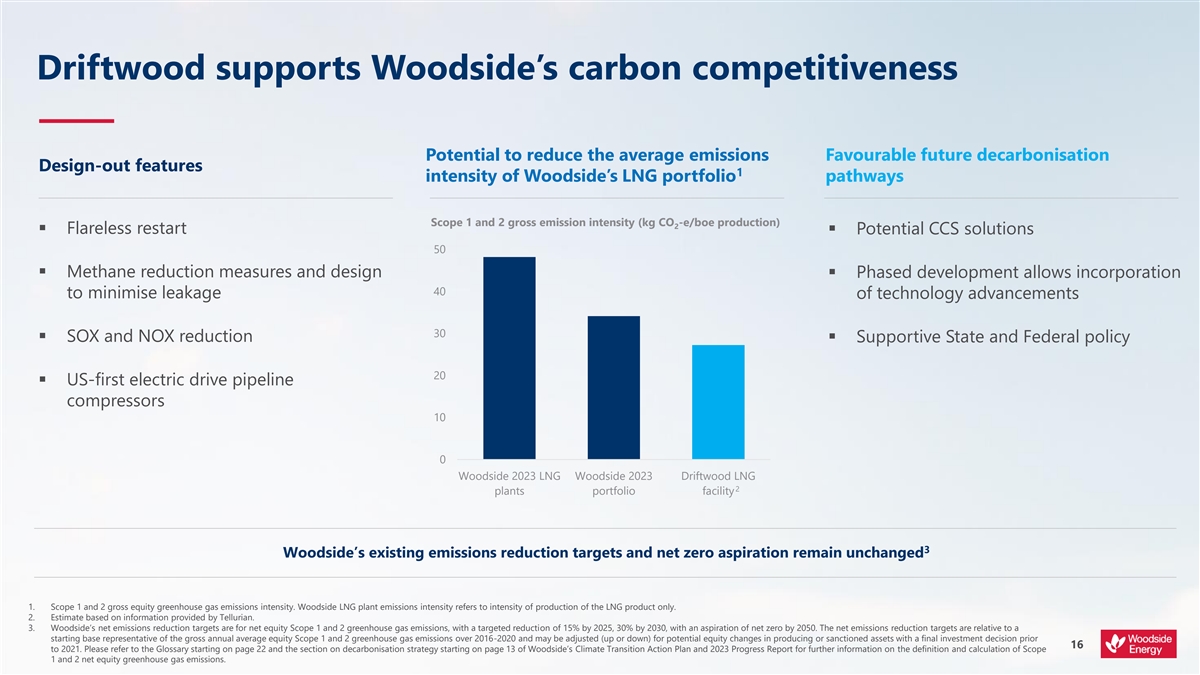 | • | Supporting Woodside’s carbon competitiveness through increased exposure to LNG and potential to reduce the average Scope 1 and 2 emissions intensity of Woodside’s LNG portfolio. |