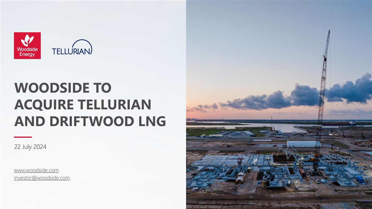 WOODSIDE TO ACQUIRE TELLURIAN AND DRIFTWOOD LNG 22 July 2024 www.woodside.com investor@woodside.com