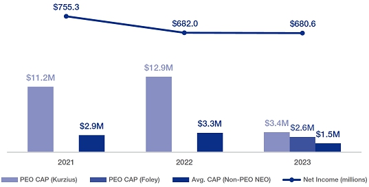 The following chart illustrates the relationship between CAP for our PEOs and the average CAP for our Non-PEO NEOs against our net income: