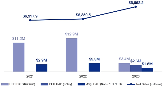 The following chart illustrates the relationship between CAP for our PEOs and the average CAP for our Non-PEO NEOs against our Net Sales: