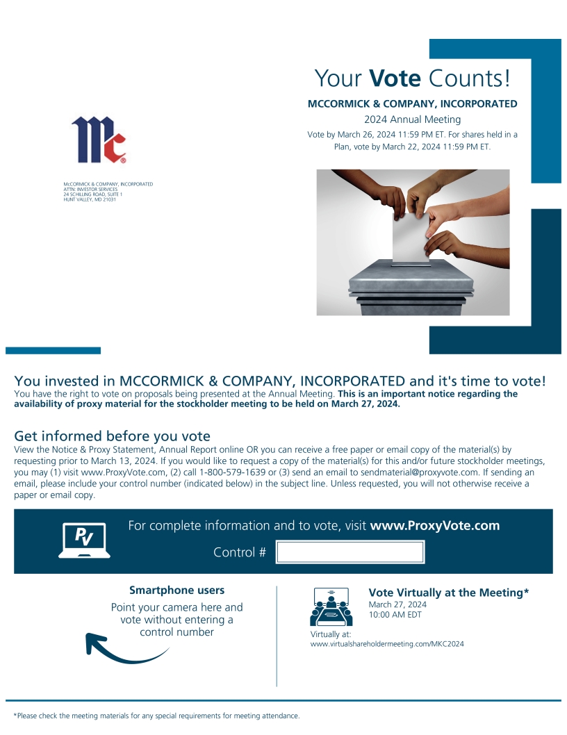 McCORMICK & COMPANY, INCORPORATED