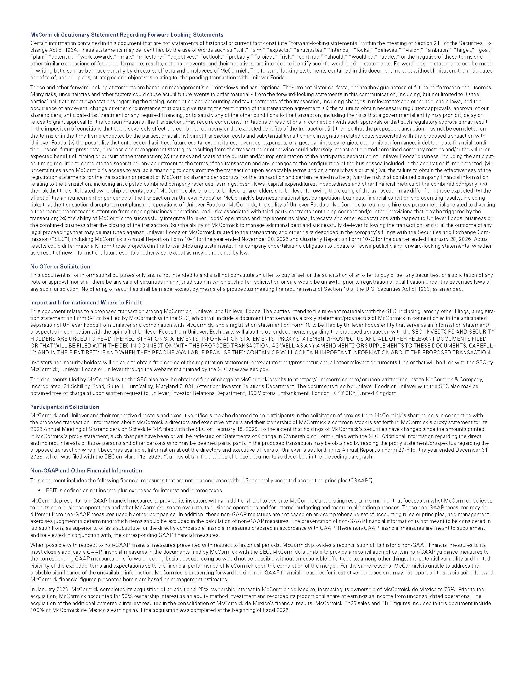 Filed by McCormick & Company, Incorporated