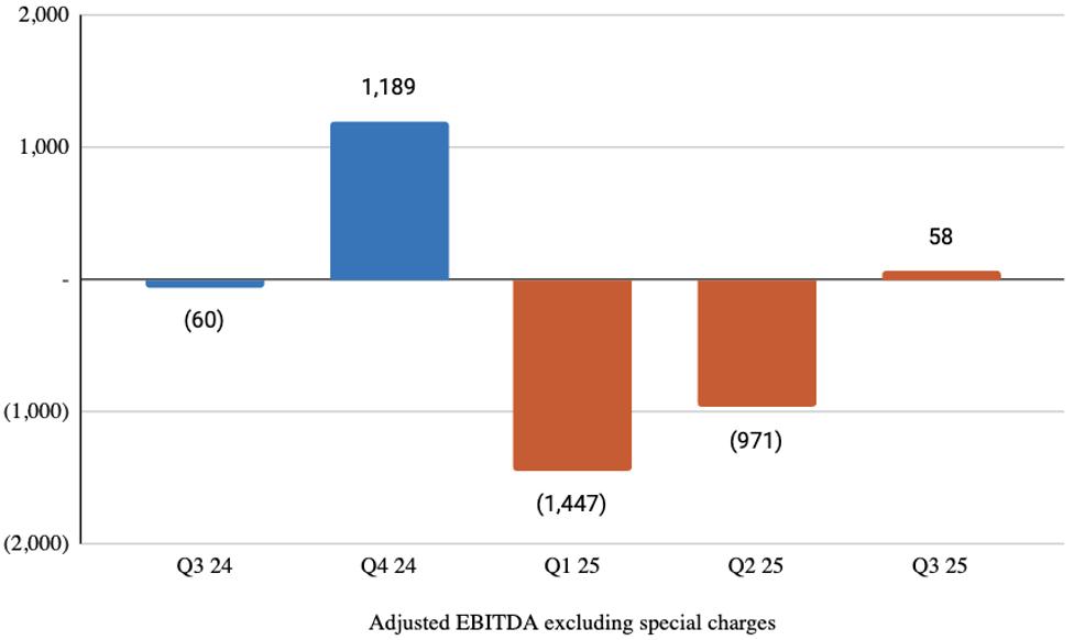 | Adj EBITDA excluding special charges | (60 | ) | 1,189 | (1,447 | ) | (971 | ) | 58 | ||||||||||||