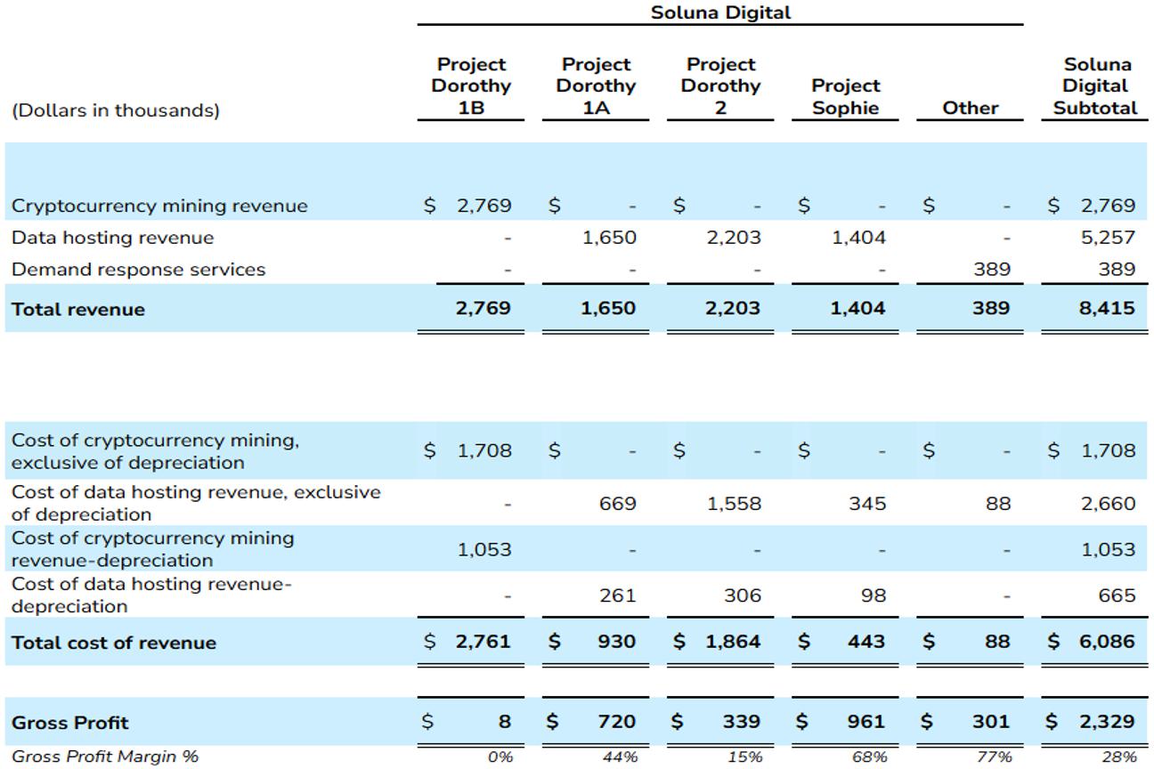| (Dollars in thousands) | Project Dorothy 1B | Project Dorothy 1A | Project Sophie | Other | Soluna | Project | Total | |||||||||||||||||||||